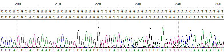 | Chr position(GRCh37) | chr4-55593613-TT…TG (57bp)Del |