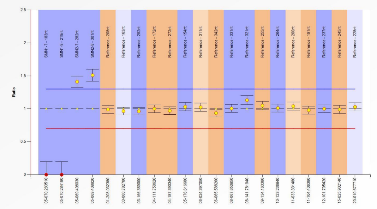 | Description | Spinal muscular atrophy (SMA) is an autosomal recessive neuromuscular disease characterized by progressive muscle weakness and atrophy caused by the degeneration of motor neurons in the anterior horn of the spinal cord. The disease is the number one fatal genetic disease in infancy, and it is estimated that there is one case in every 10,000 live births; the carrier rate of the general population is about 1/50, and the carrier rate of the domestic population is about 1/42. |