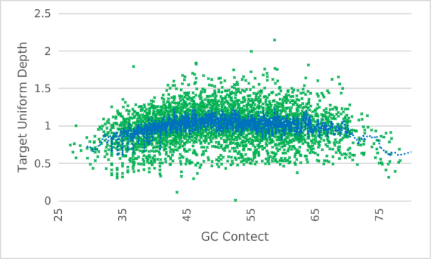 | 案例(以NA12878樣本為模板進(jìn)行建庫(kù),均一化深度后,不同GC含量區(qū)域具有良好均一) | ||||