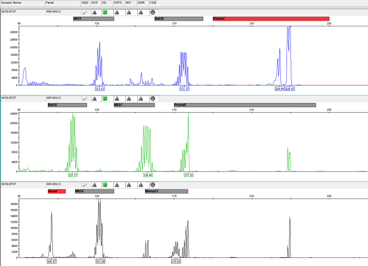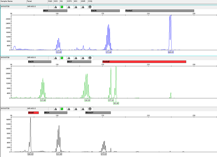 微衛(wèi)星是人類基因組的一段串聯(lián)重復(fù)序列,一般在1~6bp之間,又被稱作短串連重復(fù)(Short Tandem Repeats,STRs)或簡(jiǎn)單重復(fù)序列(Simple Sequence Repeat,SSRs)。 微衛(wèi)星不穩(wěn)定(Microsatellite Instability,MSI)指的是微衛(wèi)星重復(fù)次數(shù)減少或者增加,微衛(wèi)星不穩(wěn)定的內(nèi)在機(jī)制是錯(cuò)配修復(fù)(MMR)系統(tǒng)失調(diào),從而限制了糾正微衛(wèi)星自發(fā)的長(zhǎng)度改變的體細(xì)胞突變的能力,體細(xì)胞突變積累,最終形成MSI。