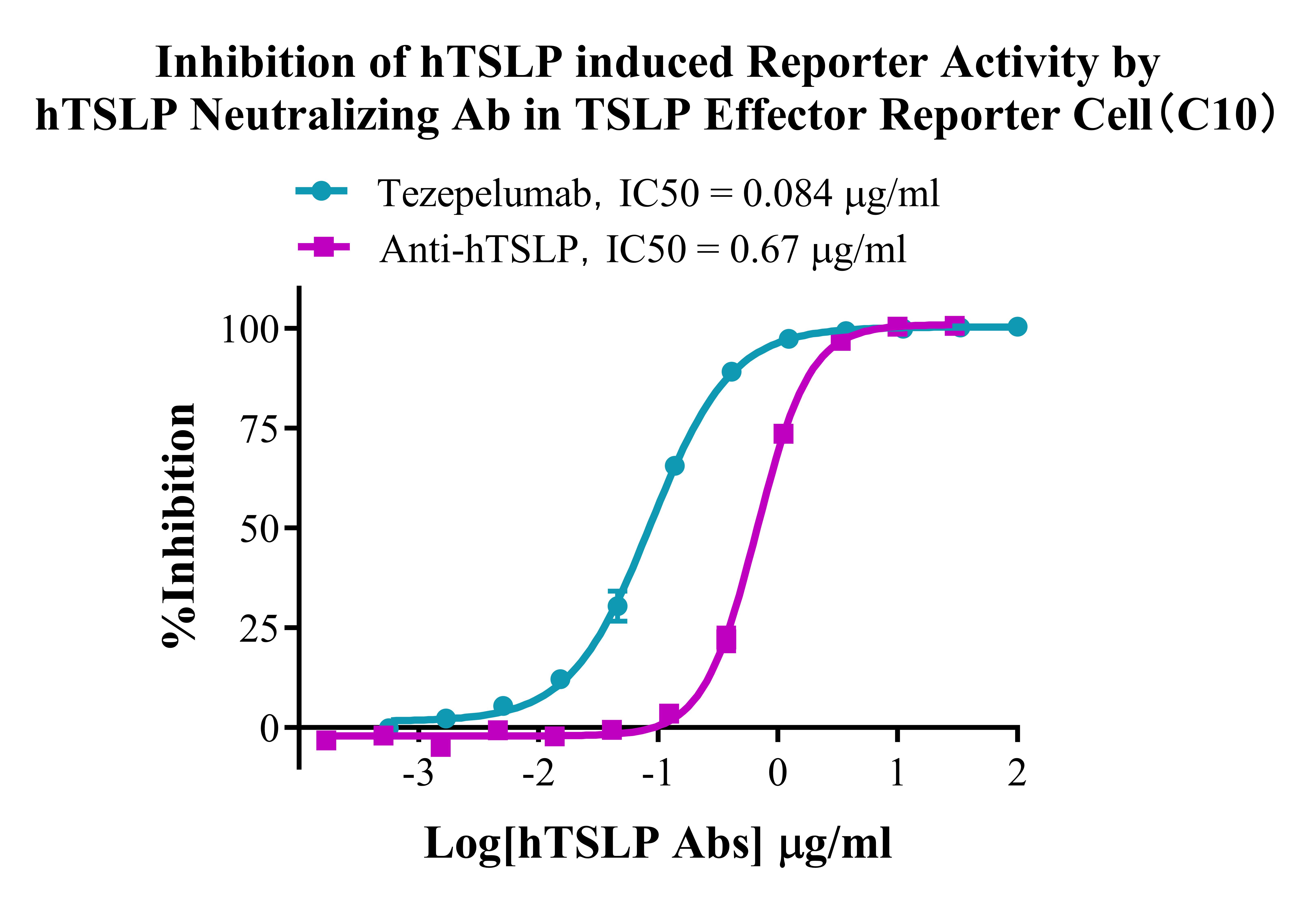 Figure 4. Inhibition of hTSLP induced Reporter Activiy by hTSLP Neutralizing Ab in TSLP Effector Reporter Cell(C10).  |