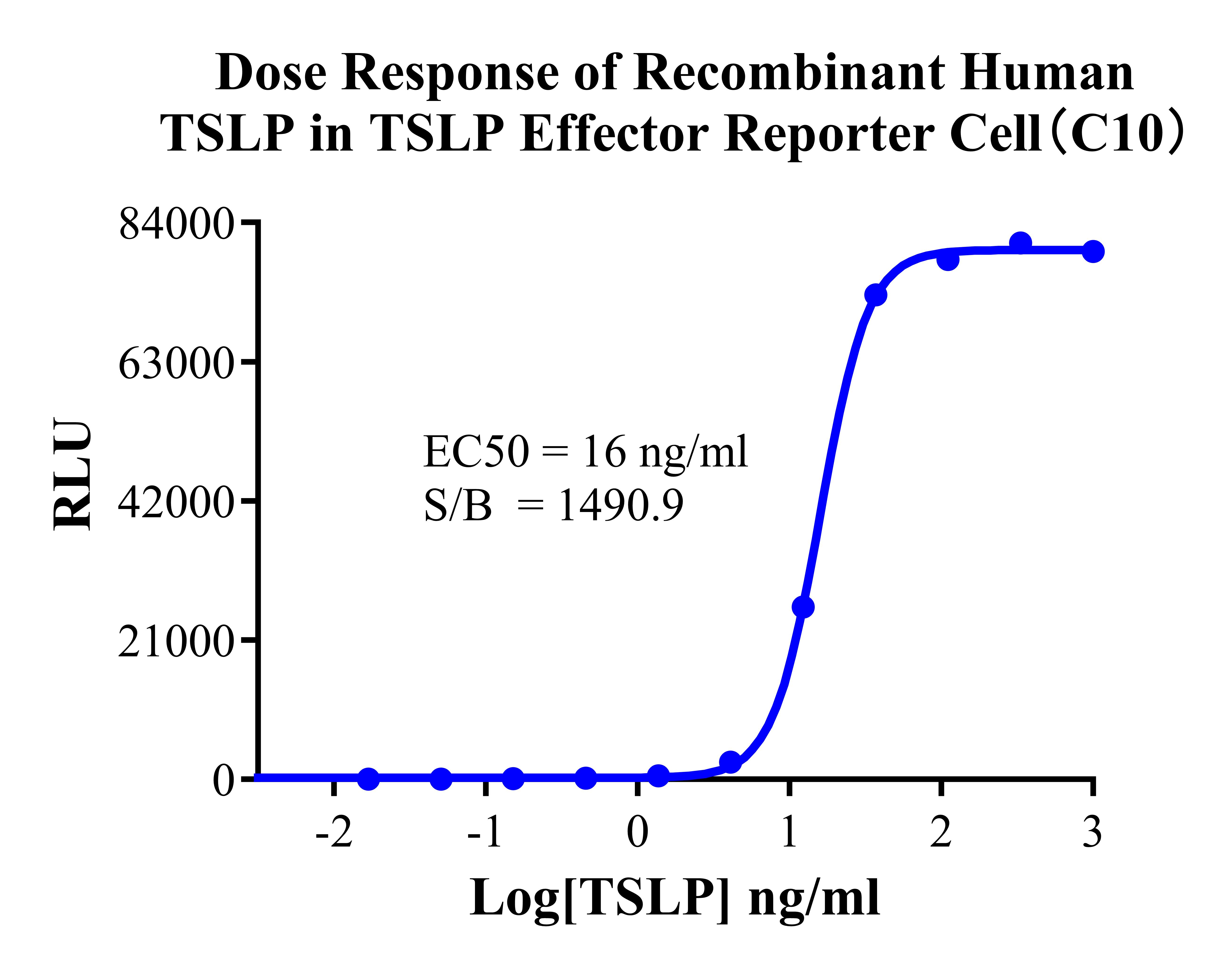 Figure 3. Dose Response of Recombinant Human TSLP in hTSLP Effector Reporter Cells (C10).  |