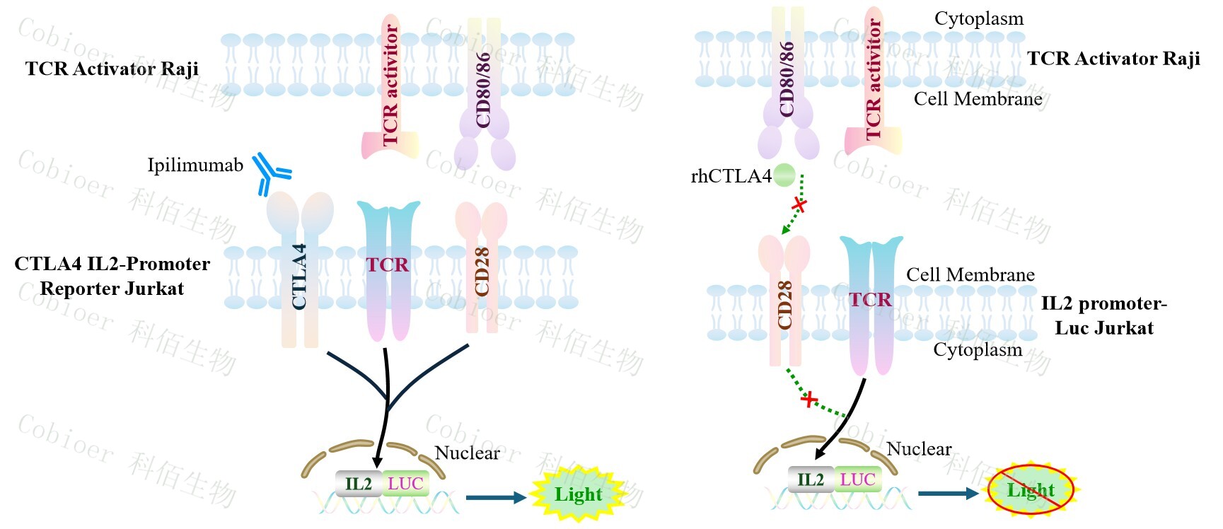 TCR Activator Raji 報告基因藥靶模型很好的模擬了體內(nèi) CD28&CD80/CD86 或者CTLA4 的信號轉導過程,原理見下圖所示。![]() Figure 1. TCR Activator Raji 細胞模型原理圖  |