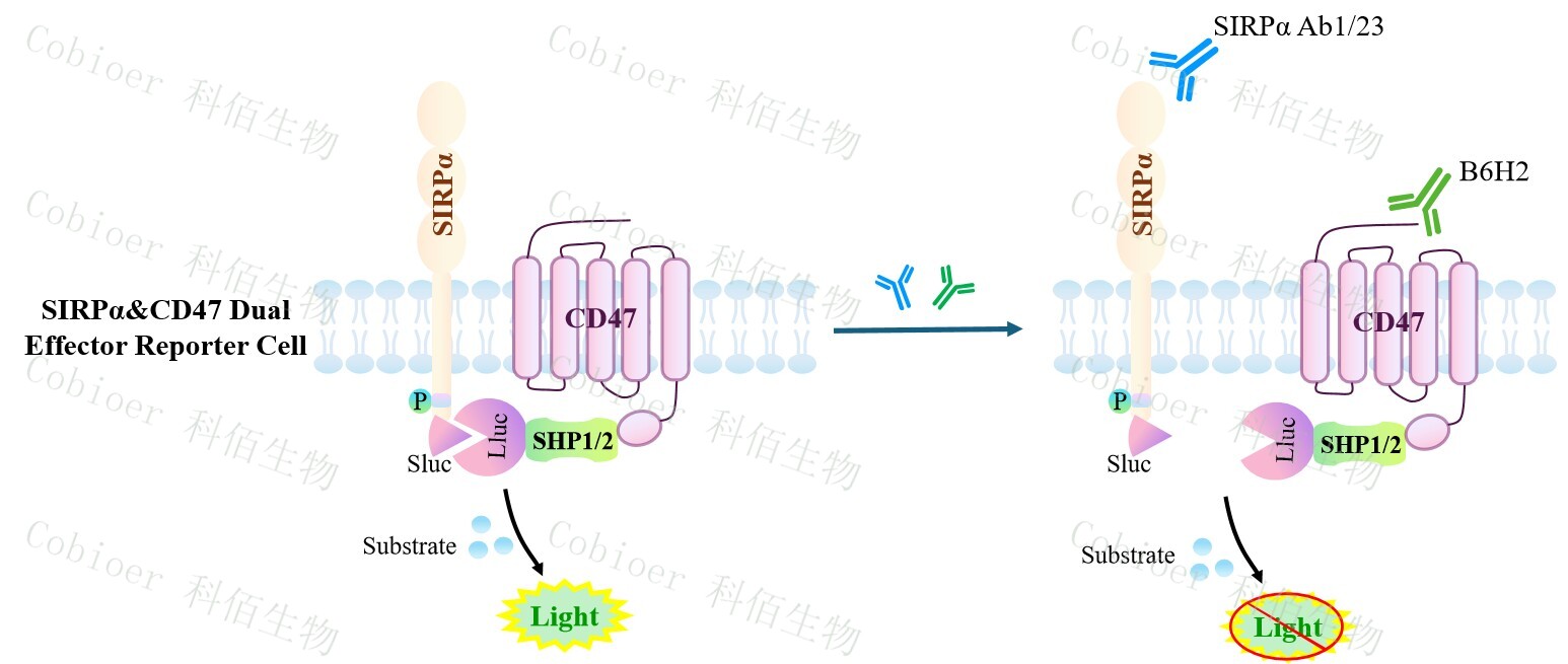 ![]() Figure 1. SIRPα&CD47 Dual Effector Reporter Cell 模型原理圖  |