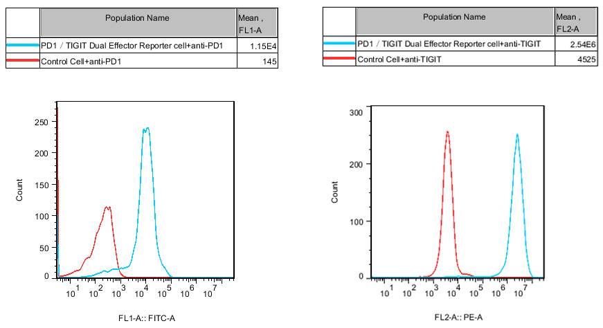 Figure 2. Recombinant PD1/TIGIT Dual Effector Reporter Cell constitutively expressing PD1/TIGIT.