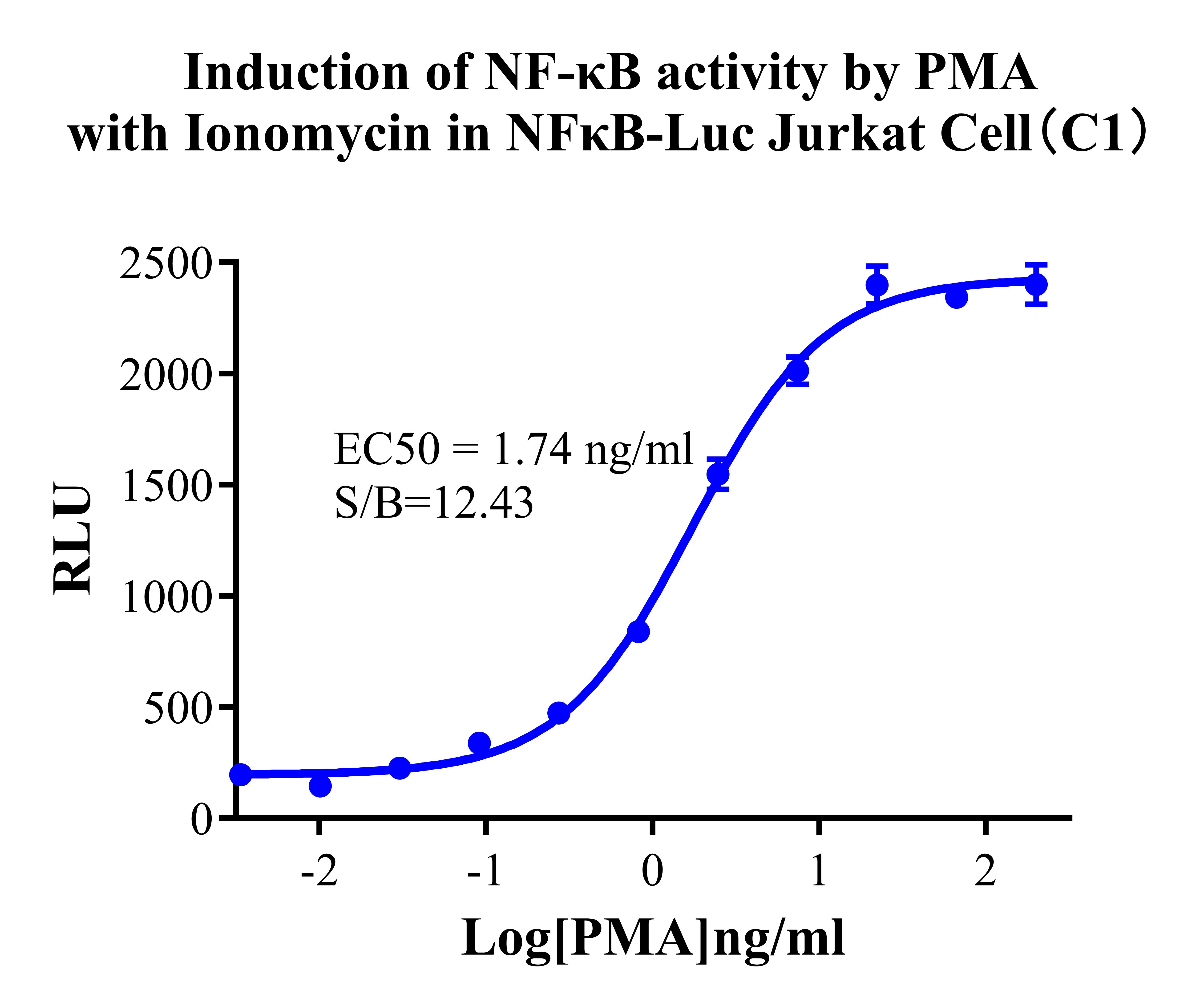 Figure 2. Detect Luciferase assay by Ultra Luciferase Detection Kit CBPH0001(we strongly suggest to purchase from Cobioer).Induction of NF-κB activity by PMA with Ionomycin in NFκB-Luc Jurkat(C1).  |