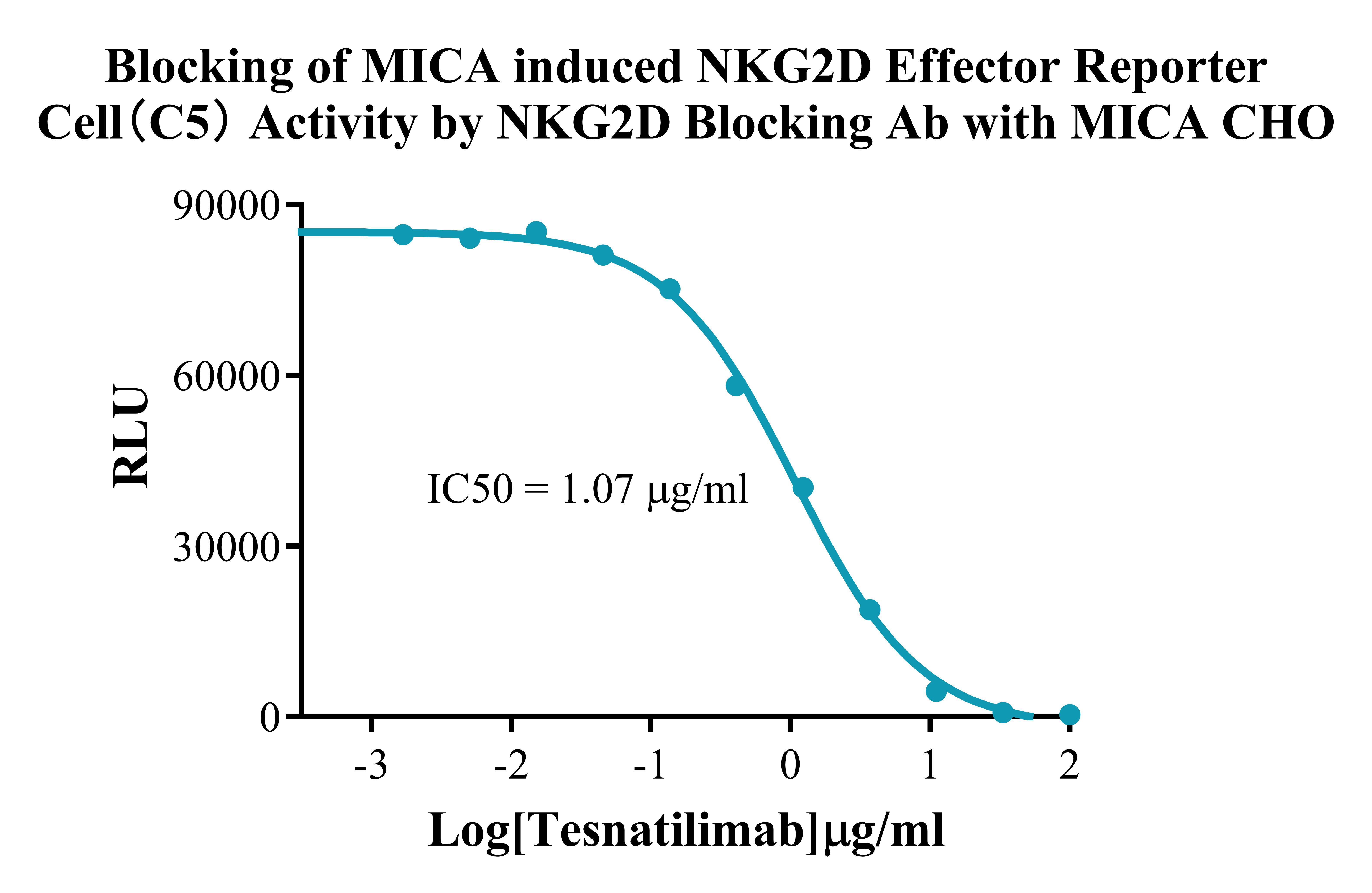 Figure 2. Blocking of MICA induced NKG2D Effector Reporter Cells (C5) Activity by NKG2D Blocking Ab with MICA CHO.  |