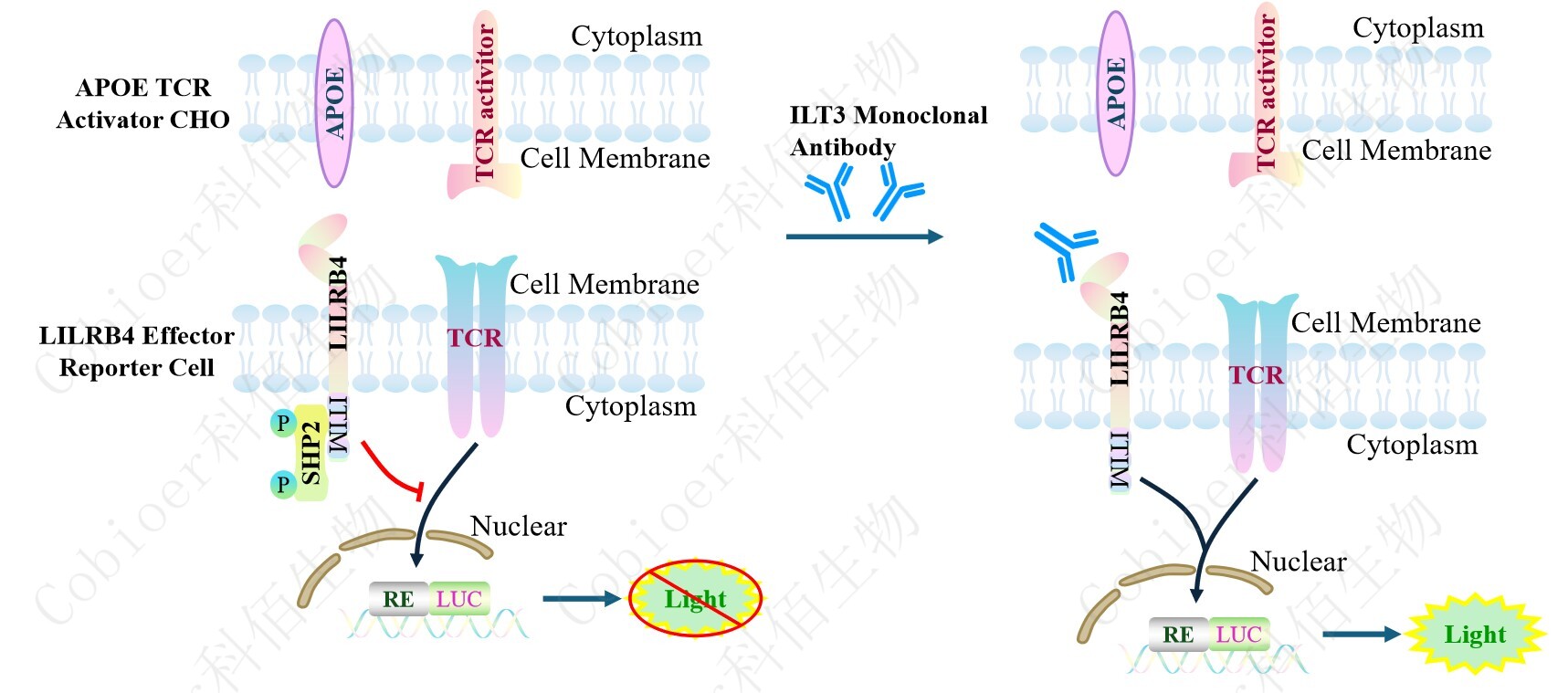 LILRB4 Effector Reporter Cell 報告基因藥靶模型很好的模擬了體內 LILRB4 的信號轉 導過程,原理見下圖所示。![]() ![]() Figure 1. LILRB4 Effector Reporter Cell 模型原理圖