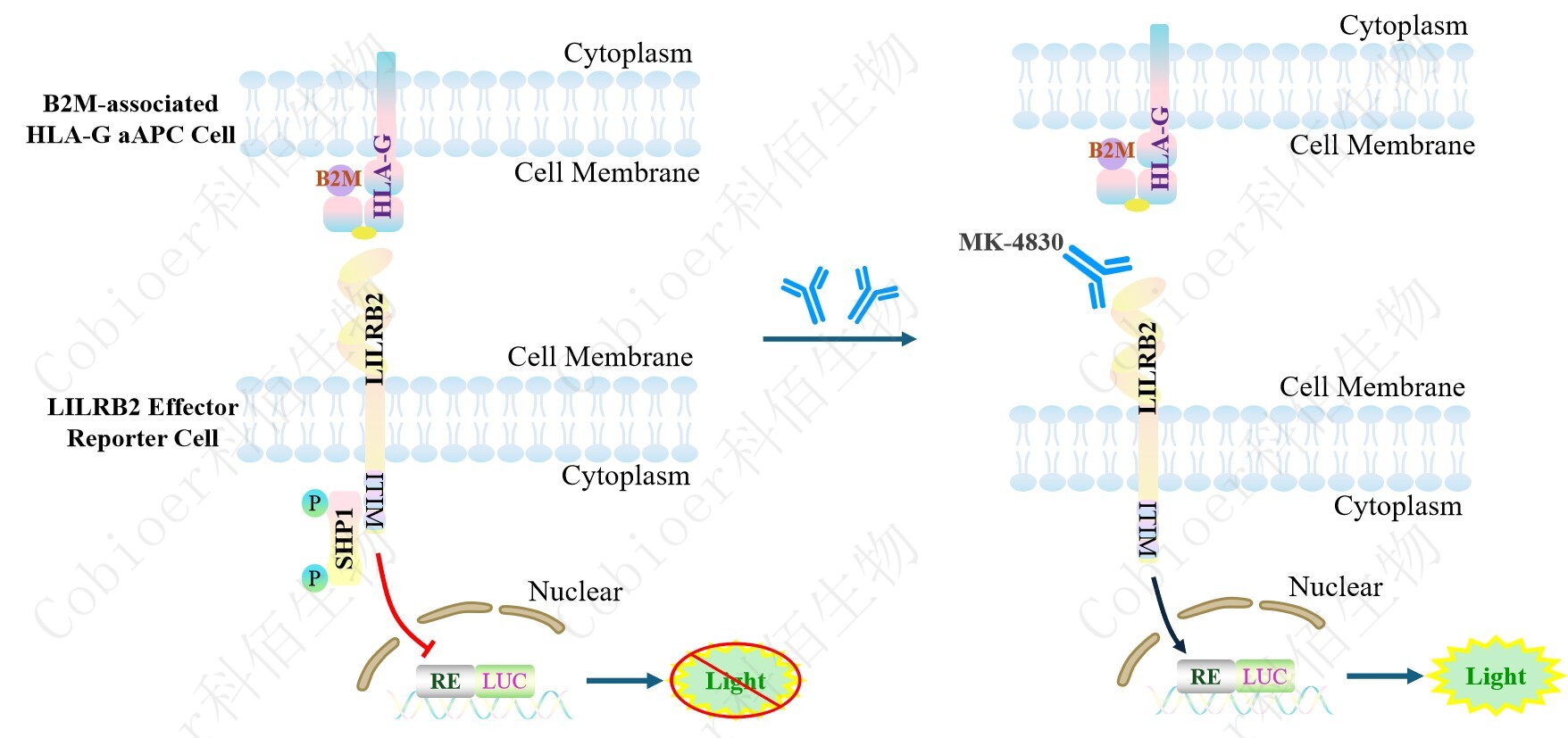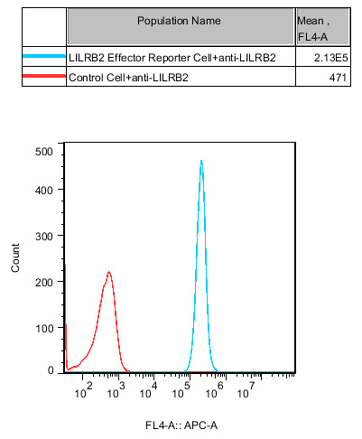 LILRB2 Effector Reporter Cell 報告基因藥靶模型很好的模擬了體內(nèi) LILRB2 的信號轉(zhuǎn) 導(dǎo)過程,原理見下圖所示。![]() ![]() Figure 1. LILRB2 Effector Reporter Cell 模型原理圖  |