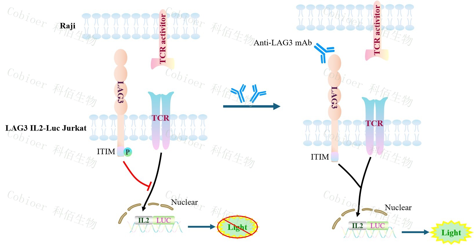 Figure 1. LAG3 IL2-Luc Jurkat 細胞模型原理圖
