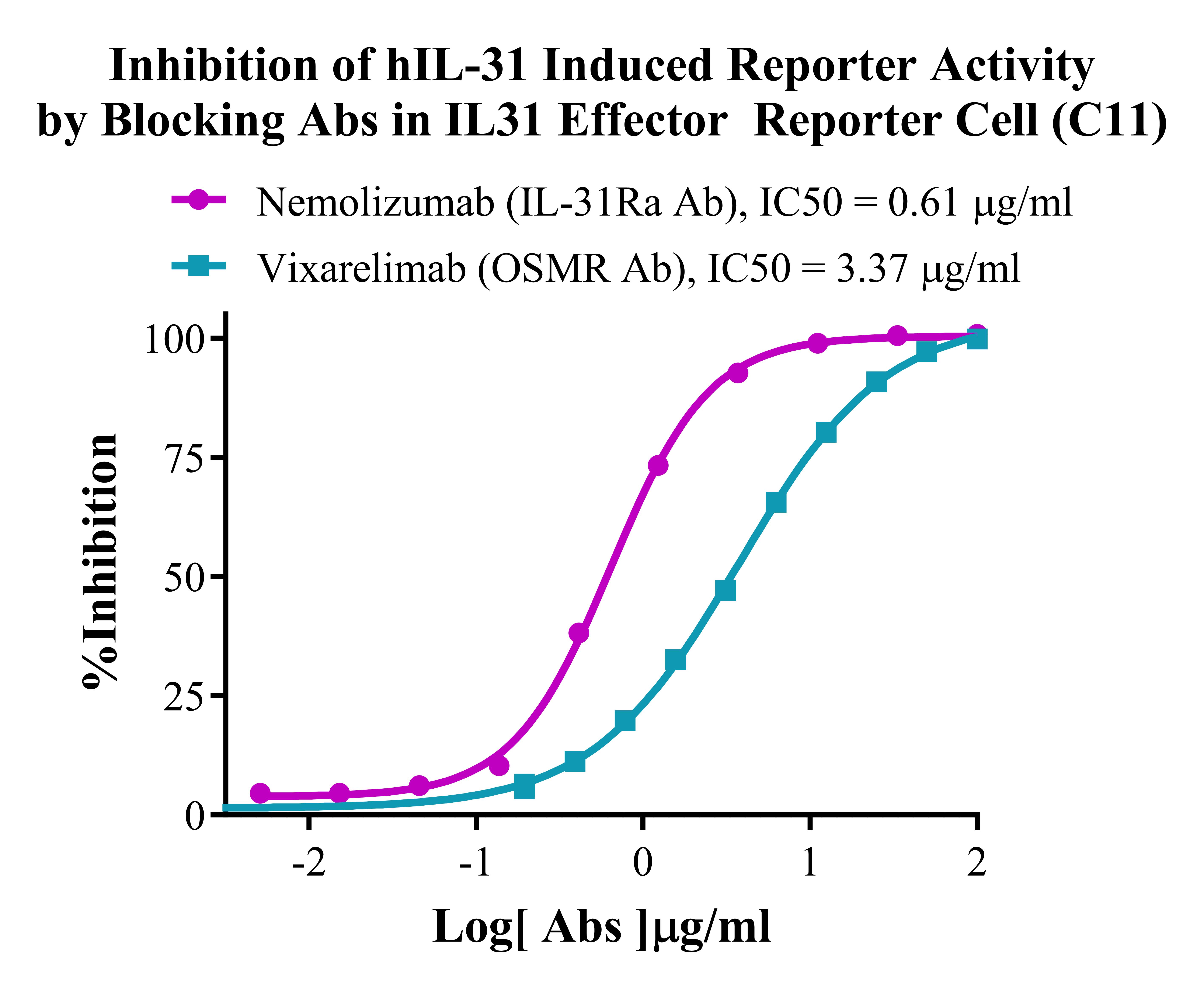 Figure 4. Inhibition of hIL-31 Induced Reporter Activity By Blocking Abs in IL31 Effector Reporter Cells (C11).  |