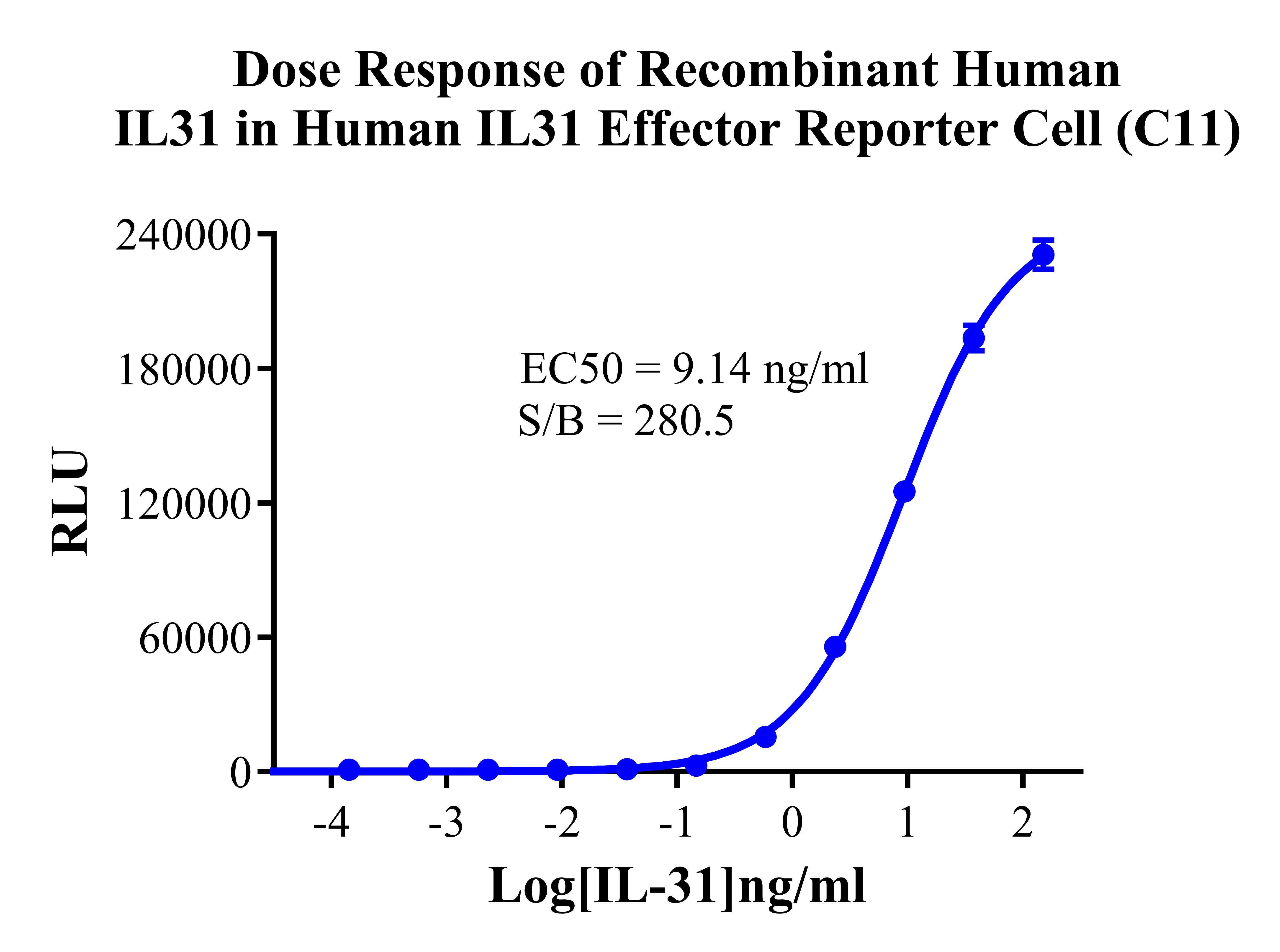 Figure 3. Dose Response of Recombinant Human IL31 in Human IL31 Effector Reporter Cells(C11).  |