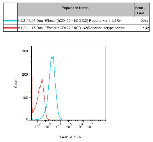Figure 4. Recombinant hIL2/IL15 Dual Effector(hCD122/hCD132) Reporter Cell constitutively expressing IL2Rγ.  |