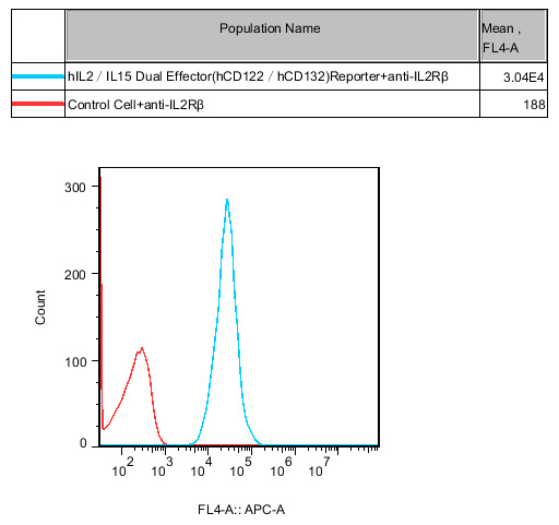 Figure 3. Recombinant hIL2/IL15 Dual Effector(hCD122/hCD132) Reporter Cell constitutively expressing IL2Rβ.  |