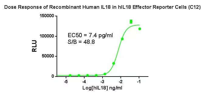 Figure 1.Dose Response of Recombinant IL-18 in IL-18 Effector Reporter Cells(C12).  |