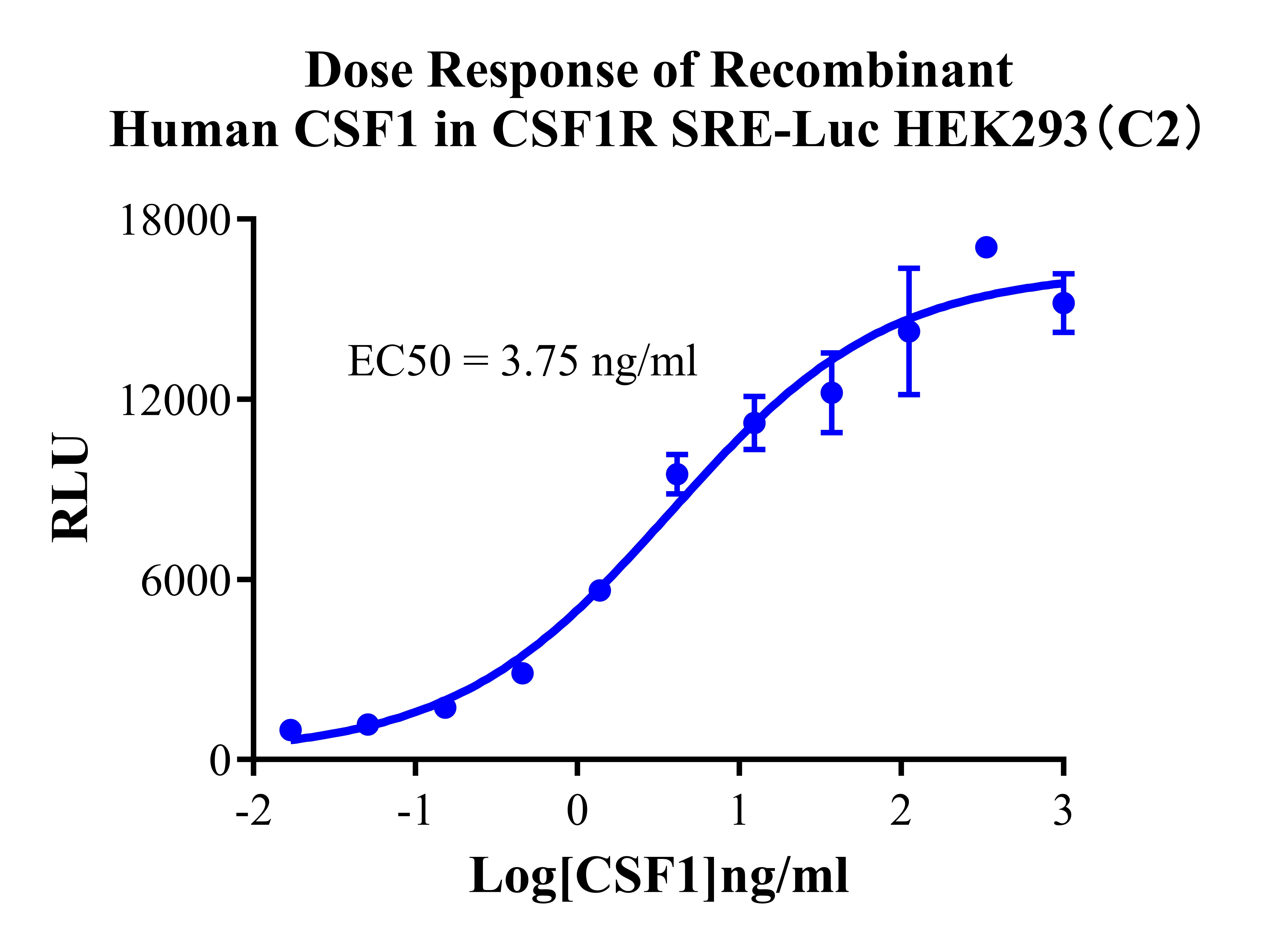 Figure 3. Detect Luciferase assay by Ultra Luciferase Detection Kit CBPH0001(we strongly suggest to purchase from Cobioer). Dose Response of Recombinant Human CSF1 in CSF1R SRE-Luc HEK293(C2).