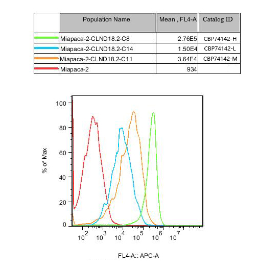 Claudin18是位于細胞膜表面緊密連接的主要成分,它在維持細胞極性和屏障功能以及促進耐酸能力方面起著重要作用。CLDN18的第一個外顯子可以選擇性剪接,形成兩個具有高度同源氨基酸序列的不同剪接突變體(CLDN18.1和CLDN18.2)??缒さ鞍證LDN18由兩個細胞外環(huán)、四個跨膜結構域和一個細胞質結構域組成。  |