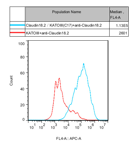 Claudin18.2 KATOIII 細(xì)胞,在 KATOIII 細(xì)胞的基礎(chǔ)上,穩(wěn)定表達(dá)人 Claudin18.2。  |