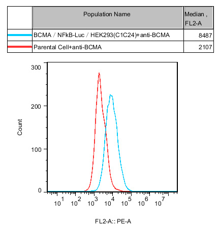 Figure 2. Recombinant BCMA/NFκB-Luc/HEK293 stably expressing BCMA.  |