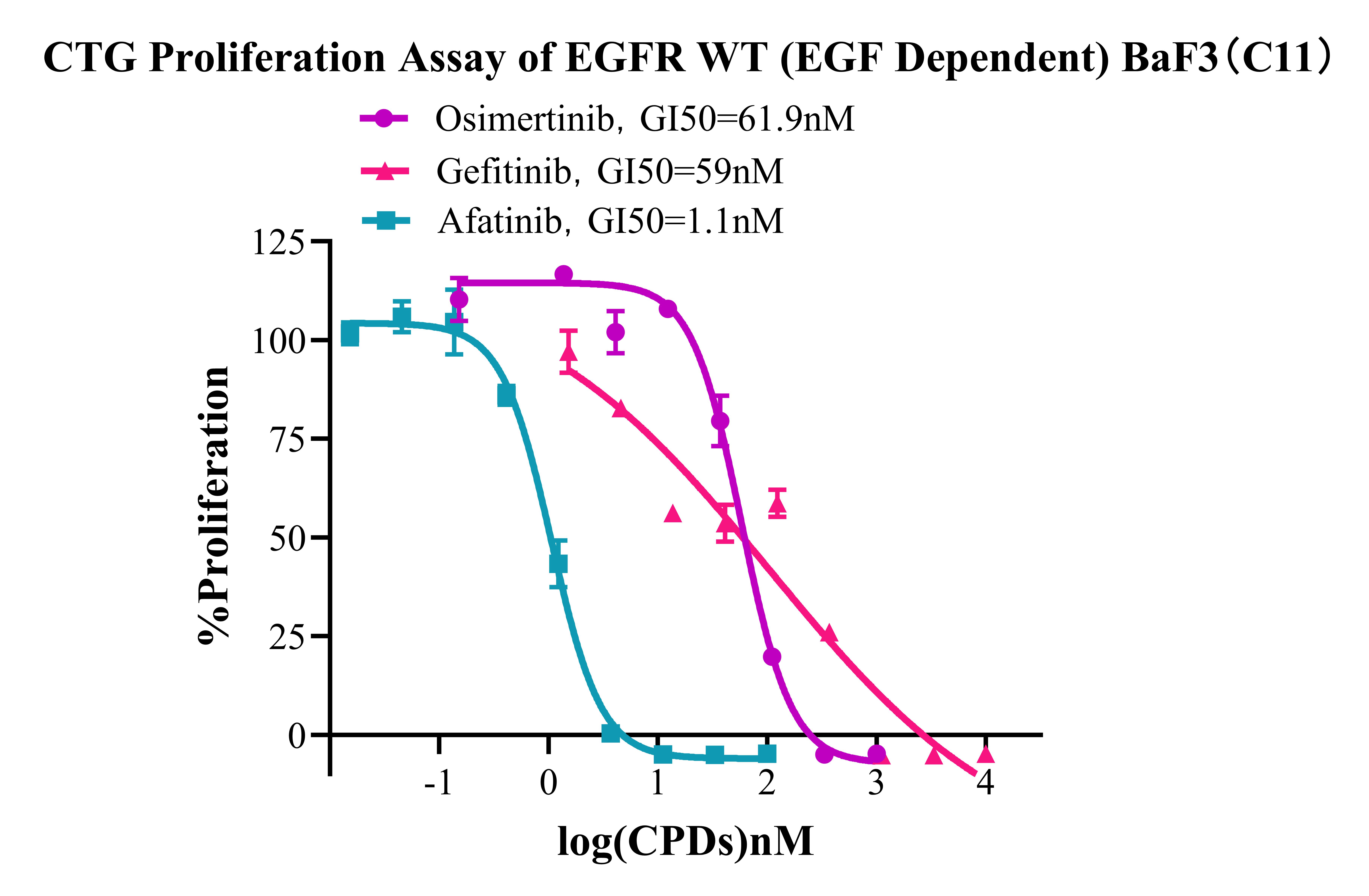 Figure 3. CTG proliferation Assay of EGFR WT (EGF Dependent) BaF3(C11).  |