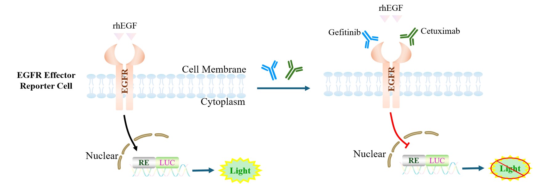![]() Figure 1. EGFR Effector Reporter Cell 細(xì)胞模型原理圖  |