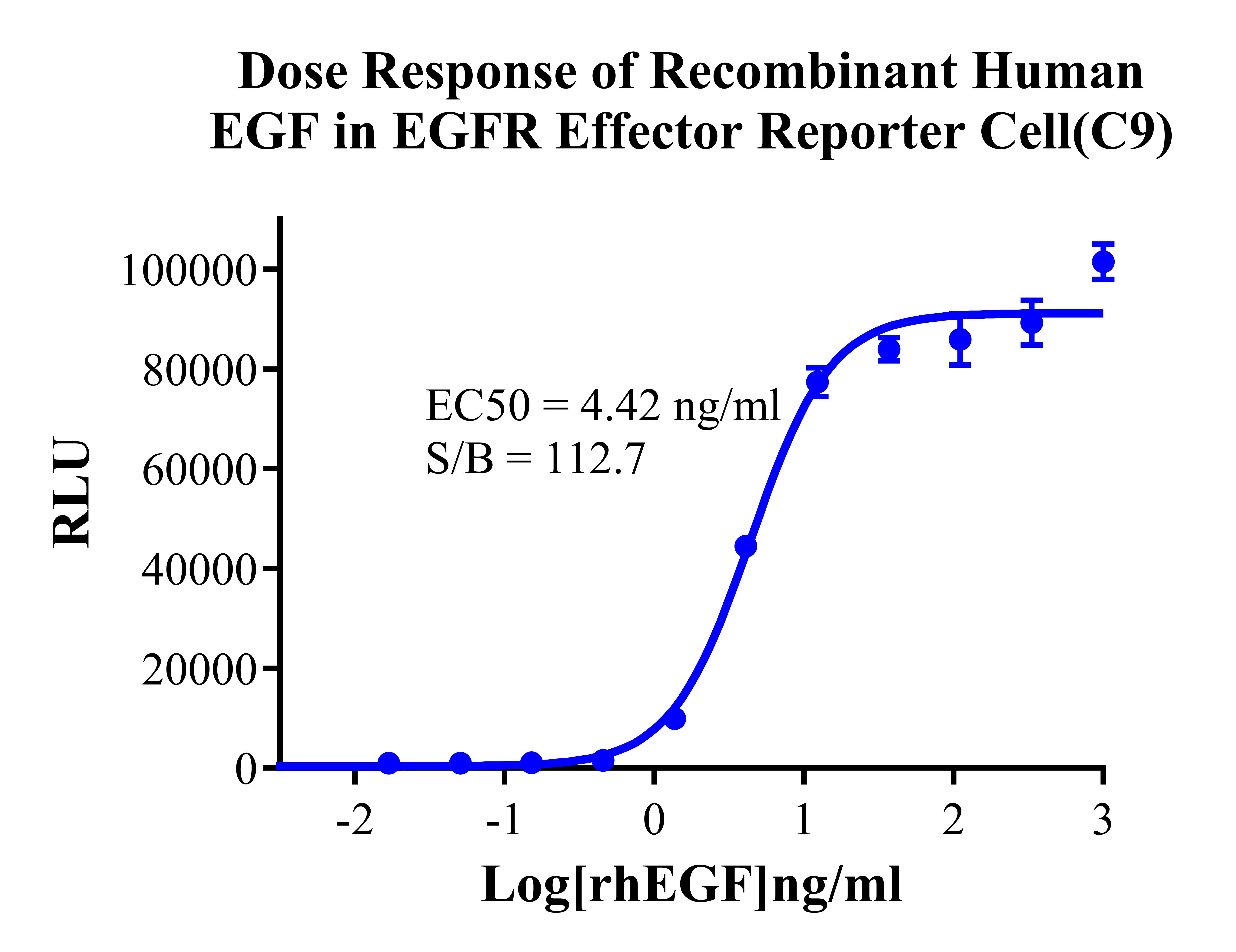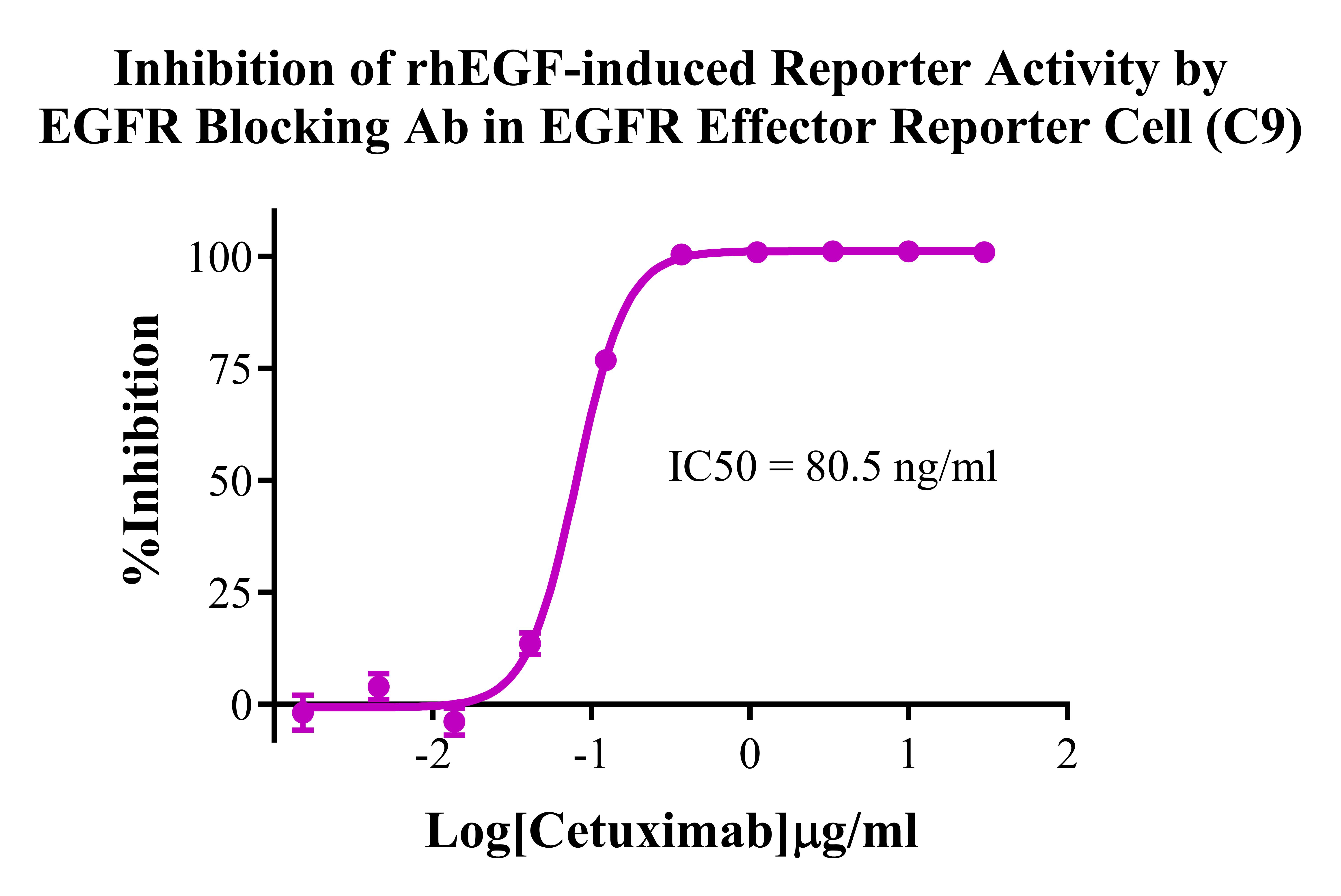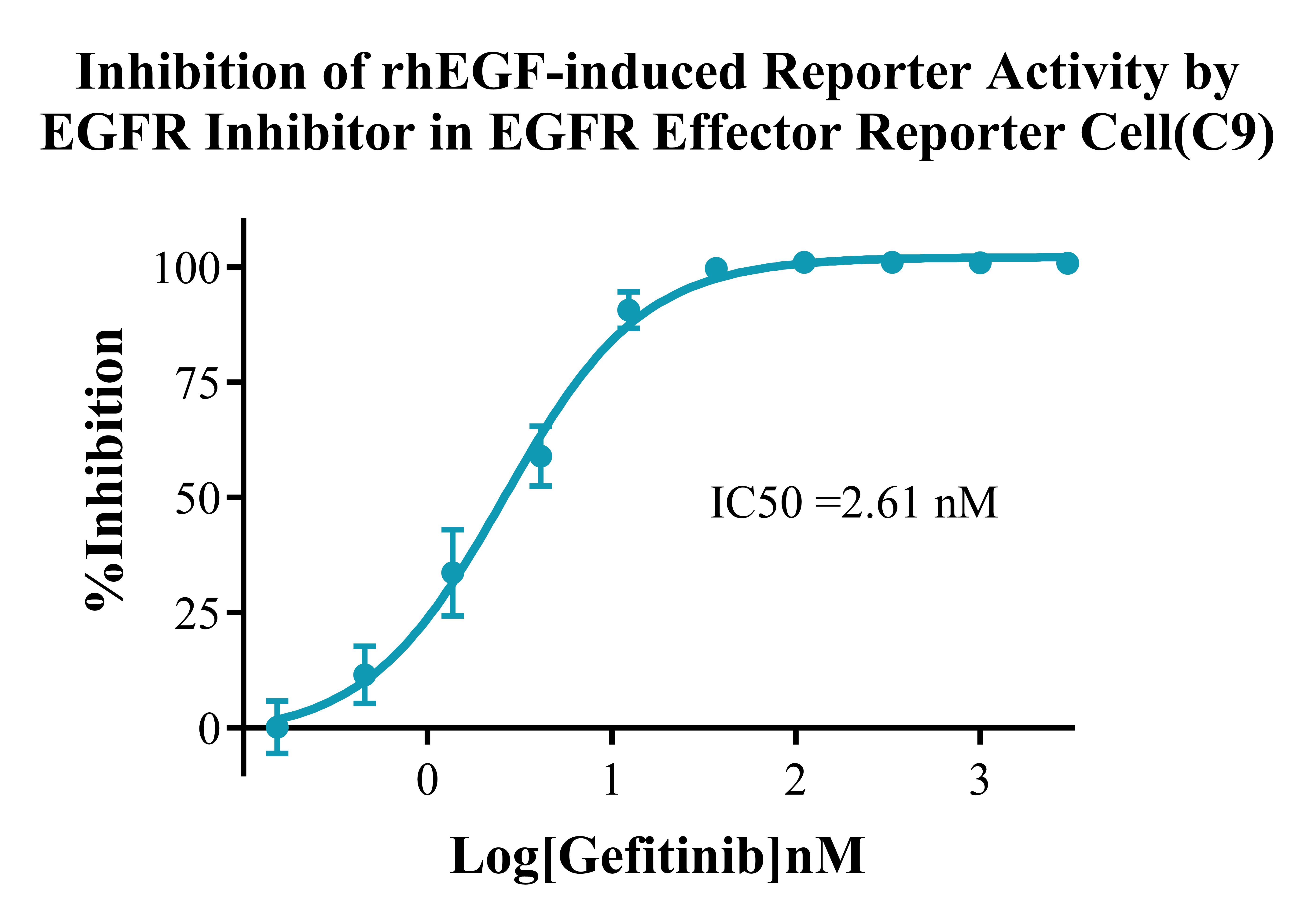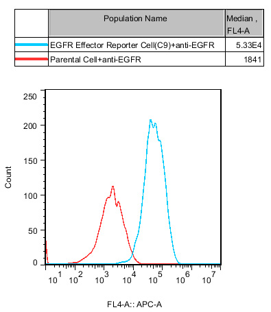 III. Representative Data![]() Figure 2. Recombinant EGFR Effector Reporter Cell stably expressing EGFR. ![]() Figure 3. Dose Response of Recombinant Human EGF in EGFR Effector Reporter Cell (C9). ![]() Figure 4. Inhibition of rhEGF-induced Reporter Activity by EGFR Blocking Ab in EGFR Effector Reporter Cell (C9). ![]() Figure 5. Inhibition of rhEGF-induced Reporter Activity by EGFR Inhibitor in EGFR Effector Reporter Cell (C9).  |