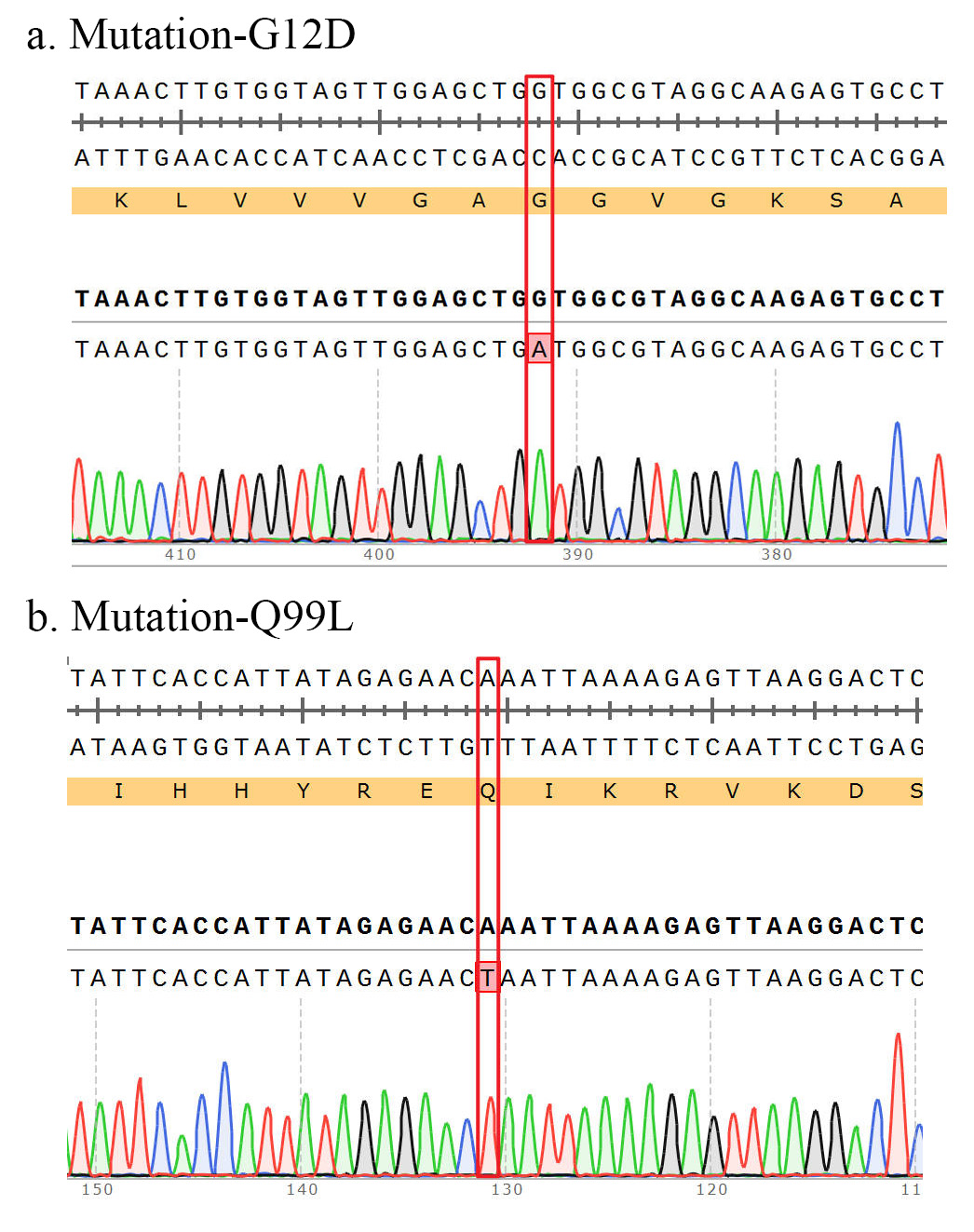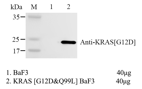 1.WB of KRAS [G12D&Q99L] BaF3 Figure 2. WB of KRAS [G12D&Q99L] BaF3 2.Sanger of KRAS [G12D&Q99L] BaF3  |