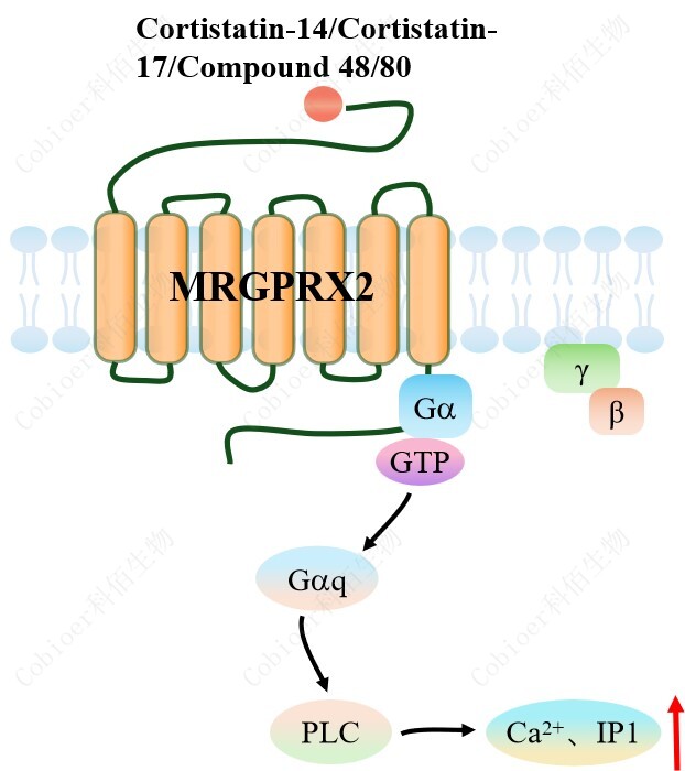 MRGPRX2 Gα15 HEK293 細(xì)胞藥靶模型很好的模擬了體內(nèi) MRGPRX2&Gα15 的信號(hào)轉(zhuǎn) 導(dǎo)過(guò)程,原理見(jiàn)圖所示。