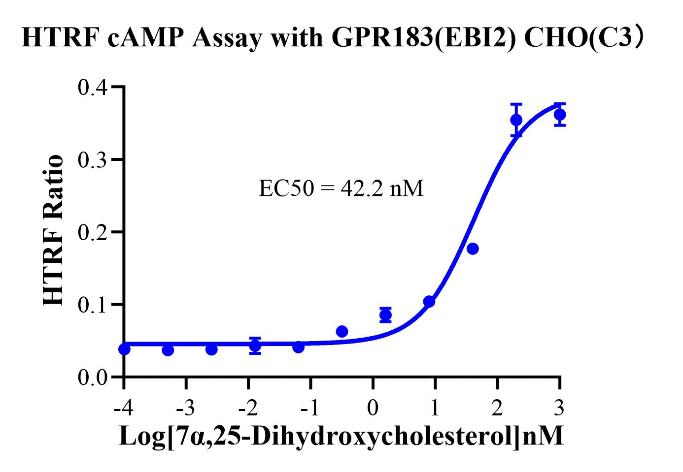 GPR183 也稱為 EBI2,屬于 GPCR Class A 家族,主要在先天性和適應(yīng)性免疫系統(tǒng)的細(xì) 胞上表達(dá)。GPR183 主要在病毒感染、免疫細(xì)胞和星形膠質(zhì)細(xì)胞的背景下進(jìn)行研究,它促 進(jìn)淋巴細(xì)胞、樹突狀細(xì)胞和巨噬細(xì)胞向次級淋巴器官的趨化分布。GPR183 是分枝桿菌感 染期間細(xì)胞內(nèi)細(xì)菌生長和 I 型 IFN 產(chǎn)生的關(guān)鍵調(diào)節(jié)因子,GPR183 表達(dá)降低與結(jié)核病嚴(yán)重程 度增加有關(guān)。EBI2 表達(dá)失調(diào)也與人類腫瘤疾病有關(guān),例如急性髓系白血病、慢性淋巴細(xì)胞 白血病、彌漫性大 B 細(xì)胞淋巴瘤以及濾泡淋巴瘤。  |