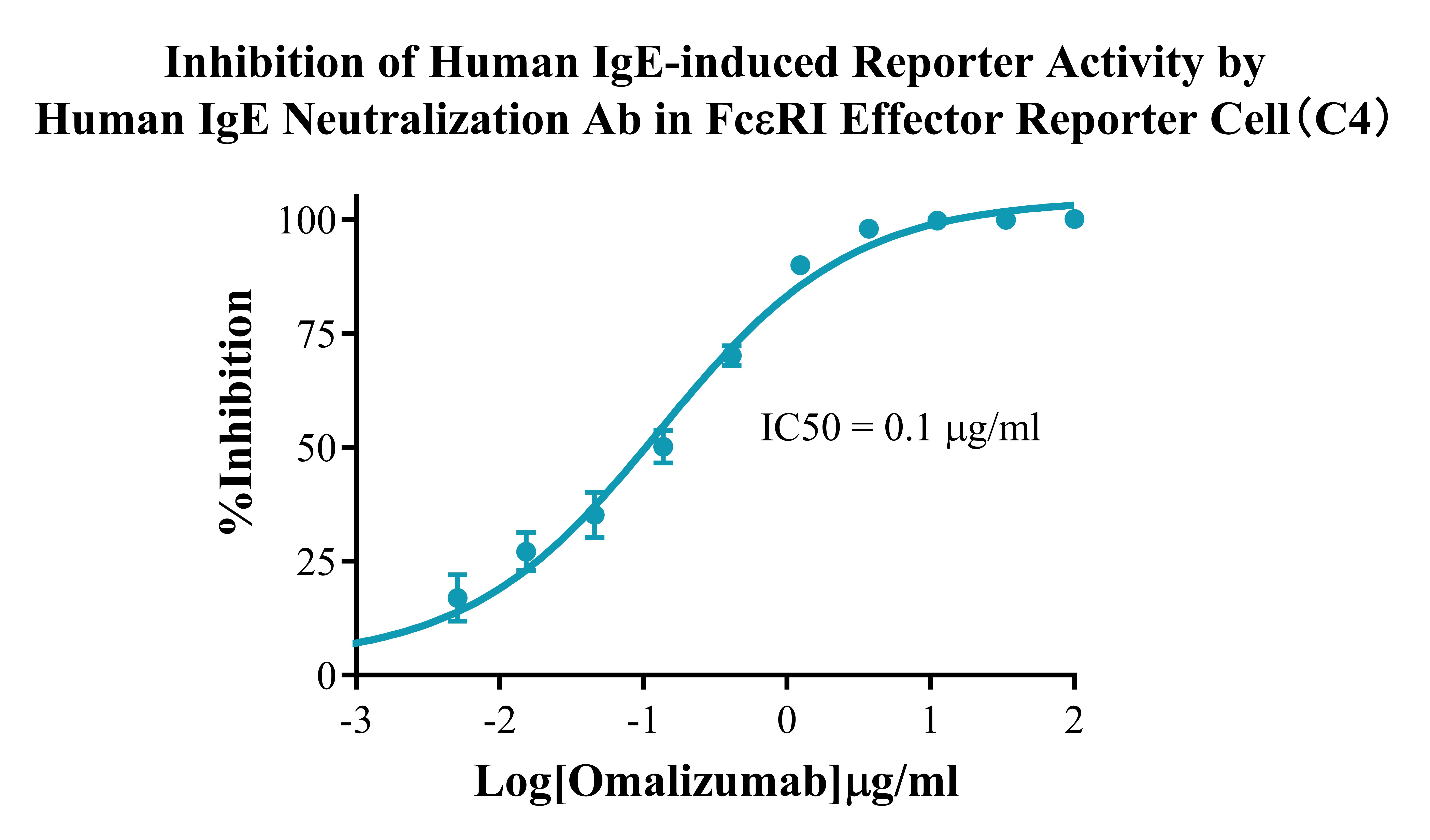IV. Representative Data![]() Figure 2. Recombinant FcεRI Effector Reporter Cell stably expressing FcεRIA. ![]() Figure 3. Dose Response of Human IgE in FcεRI Effector Reporter Cell(C4). ![]() Figure 4. Inhibition of Human IgE-induced Reporter Activity by Human IgE Neutralization Ab in FcεRI Effector Reporter Cell(C4).  |