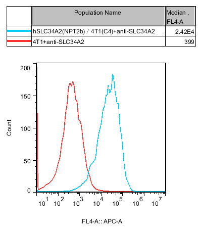 Figure 1. Recombinant hSLC34A2(NPT2b)/4T1 stably expressing hSLC34A2(NPT2b).  |