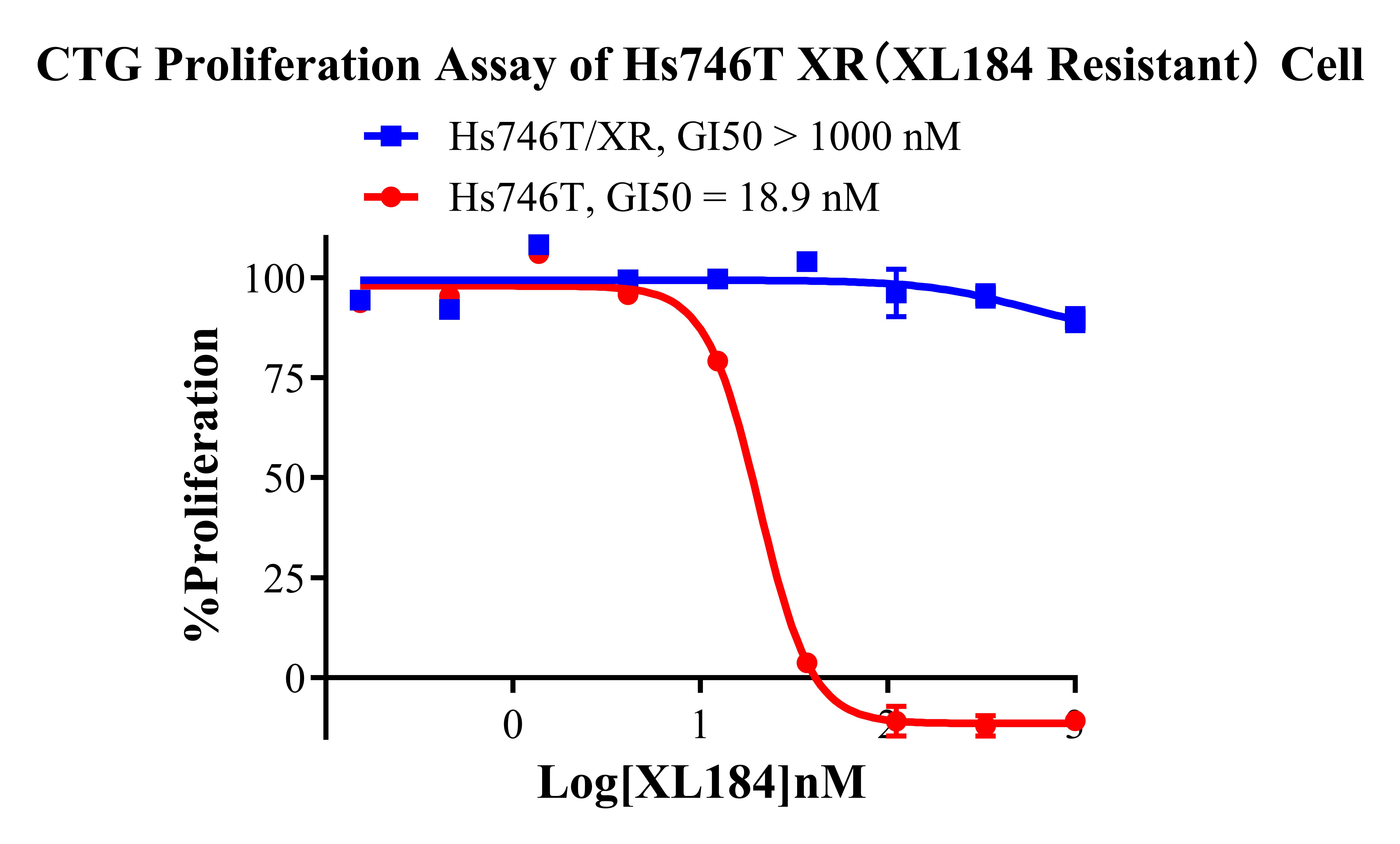Figure 1. CTG Proliferation Assay of Hs746T & XR (XL184 Resistant) .  |