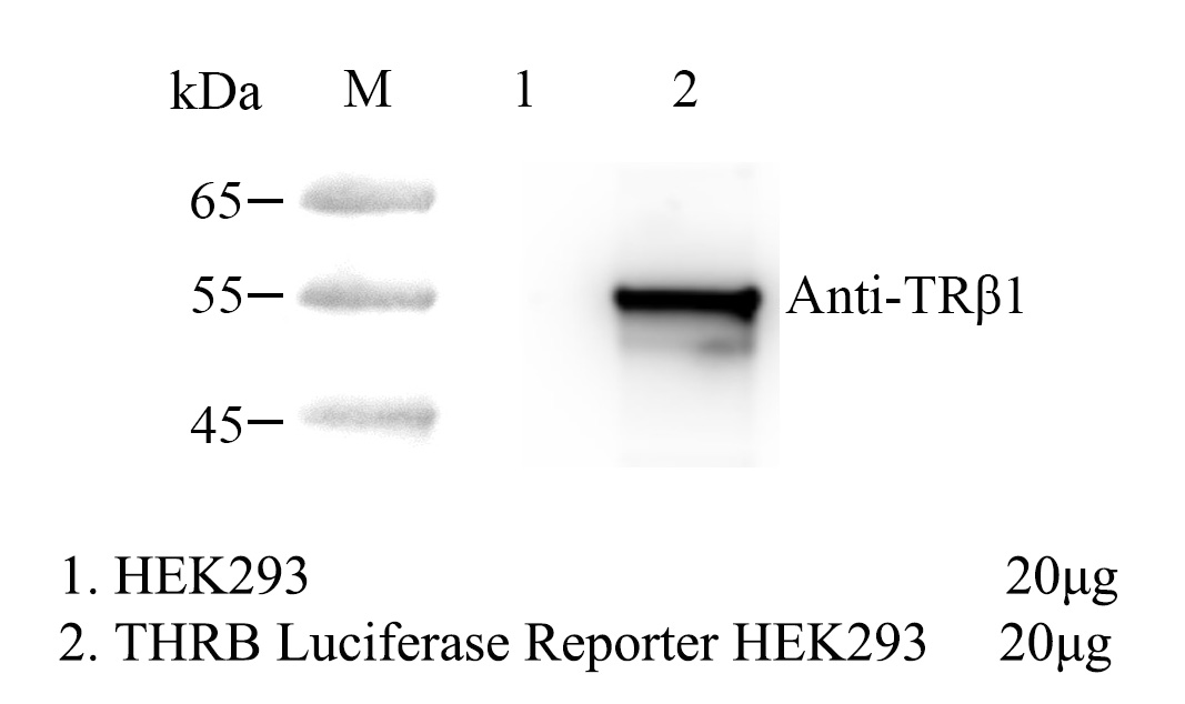 ![]() Figure 2. WB of hTHRB Luciferase Reporter HEK293. ![]()  |