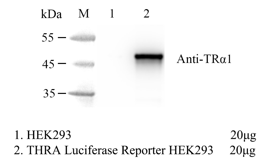 ![]() Figure 2. WB of hTHRA Luciferase Reporter HEK293. ![]()  |