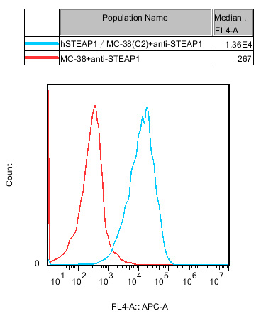 | 前列腺六跨膜上皮抗原 1(STEAP1),又稱為 PRSS2,一種六次跨膜蛋白,具有 N 端和 C 端均在細胞內(nèi)的結(jié)構(gòu),屬于 STEAP 家族,該家族還包含成員 STEAP1B、STEAP2、 STEAP3、STEAP4。其中,STEAP1B 是 STEAP1 的截短同源物,是一個四次跨膜蛋白。 STEAP1 在前列腺上皮細胞中高表達,但在其他正常組織中表達較低,在前列腺癌、膀胱 癌、肺癌、乳腺癌等多種癌癥中高表達。STEAP1 參與細胞內(nèi)的氧化還原反應,可能在鐵 代謝和細胞增殖中發(fā)揮作用。 | |