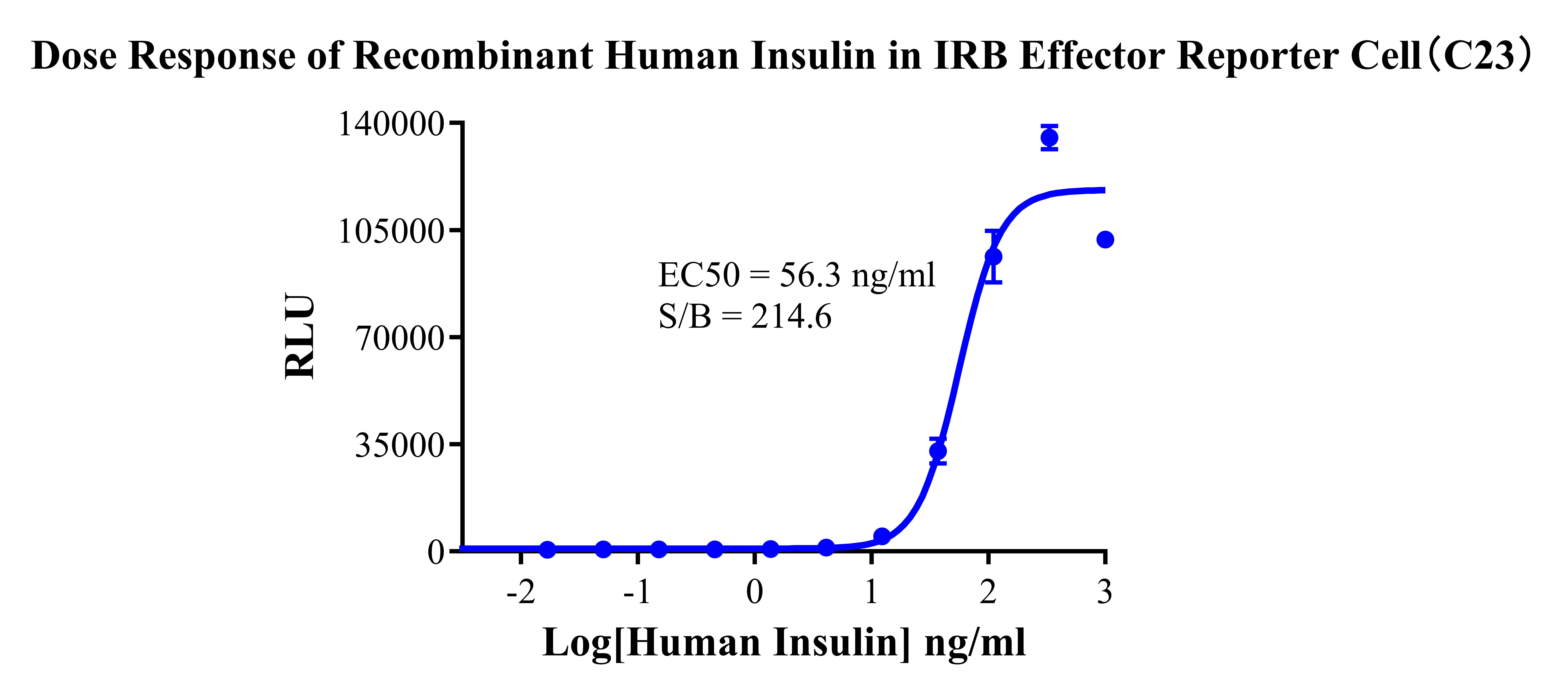 IV. Representative Data![]() Figure 1. Recombinant IRB Effector Reporter Cell stably expressing IRB. ![]() Figure 2. Dose Response of Recombinant Human Insulin in IRB Effector Reporter Cell (C23).  |