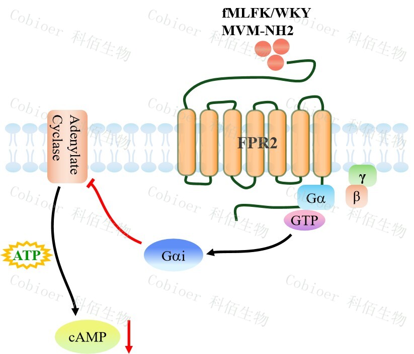 | 甲酰肽受體(FPR)屬于 G 蛋白偶聯(lián)受體(GPCR)家族,是趨化受體和模式識別受 體(PRR),可識別細(xì)菌和線粒體衍生的甲?;?。FPRs 家族包括三個成員(FPR1、 FPR2 和 FPR3),它們在多種組織和細(xì)胞類型中廣泛表達(dá),調(diào)節(jié)多種生物功能,如血管生 成、細(xì)胞增殖和防止細(xì)胞死亡。 FPR 在吞噬細(xì)胞中轉(zhuǎn)導(dǎo)趨化信號,這些吞噬細(xì)胞與組織損傷相關(guān)的趨化分子模式發(fā)生 反應(yīng),這些分子模式介導(dǎo)細(xì)胞粘附、定向遷移、脫顆粒和超氧化物產(chǎn)生,從而通過細(xì)胞內(nèi) 鈣動員和 MAPK、ERK、PI3K、Akt 和 p38/MAPK 信號轉(zhuǎn)導(dǎo)來調(diào)節(jié)宿主防御和炎癥反應(yīng)途 徑。 | |