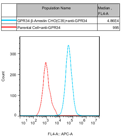 ![]() Figure 2. Recombinant GPR34 β-Arrestin CHO stably expressing GPR34. ![]()  |