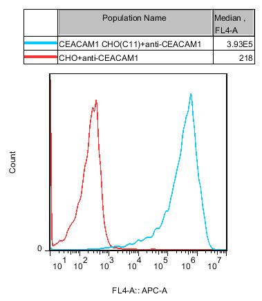 | CEACAM1 CHO 細(xì) 胞, 在 CHO-K1 細(xì) 胞的 基礎(chǔ)上 ,穩(wěn) 定表 達(dá)人 CEACAM1。 | |