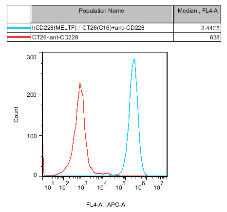 IV. Representative Data![]() Figure 1. Recombinant hCD228(MELTF)/CT26 stably expressing hCD228(MELTF).  |