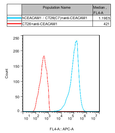 IV. Representative Data![]() Figure 1. Recombinant hCEACAM1/CT26 stably expressing hCEACAM1.  |