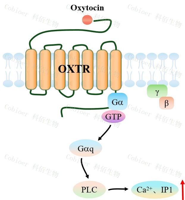 |      催產素(OXT)是大腦中由下丘腦室旁核(PVN)和視上核(SON)產生的神經肽, 主要作為外周系統(tǒng)中的激素,可促進母乳喂養(yǎng)時的乳汁分泌,調節(jié)分娩時的子宮收縮,緩 解疼痛和促進分娩過程,促進傷口愈合。此外,中樞神經系統(tǒng)(CNS)中的 OXT 系統(tǒng)在社 會認可、社交行為、焦慮相關行為和自主神經功能中起著重要作用,例如母體行為、攻擊 性、交配、依戀和性行為。除了促社會效應外,OXT 還被確定為大腦中重要的抗應激和抗 焦慮因子,通過其靶受體(催產素受體,OXTR)激活細胞內 MEK/ERK 信號傳導。 OXTR 作為 GPCR 在多個功能性大腦區(qū)域廣泛表達,包括前額葉皮層、杏仁核、海馬 體、下丘腦和其他區(qū)域。中樞神經系統(tǒng)中的 OXTR 參與社會認知、焦慮、抑郁和其他心理 行為或情緒的調節(jié),激活細胞內信號通路,例如 MAPK、PKC 和 PLC 信號傳導。  |