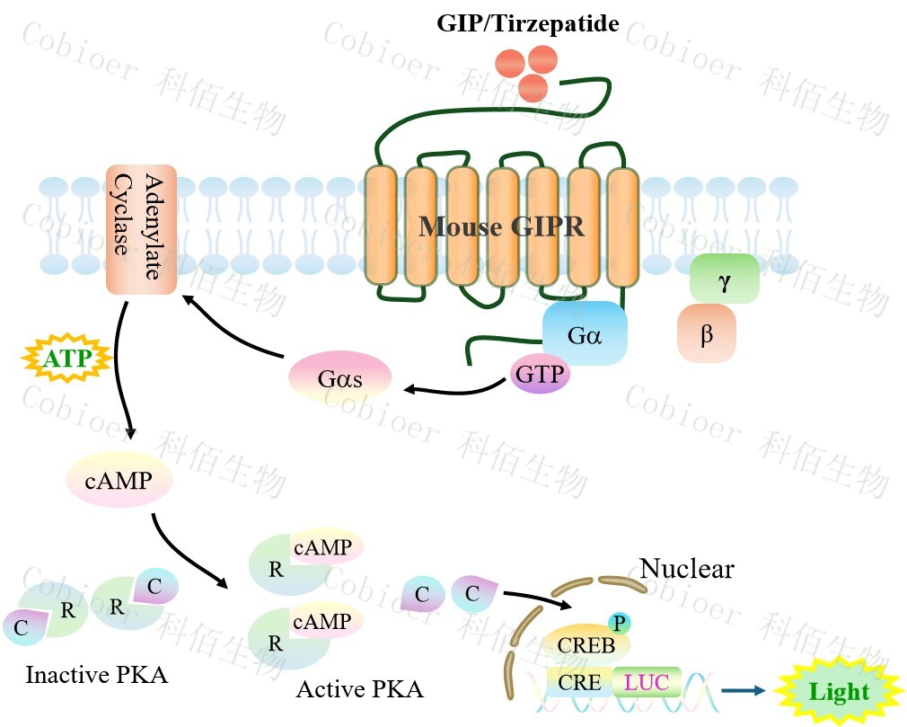 Figure 1. Mouse GIPR CRE-Luc HEK293 細(xì)胞模型原理圖