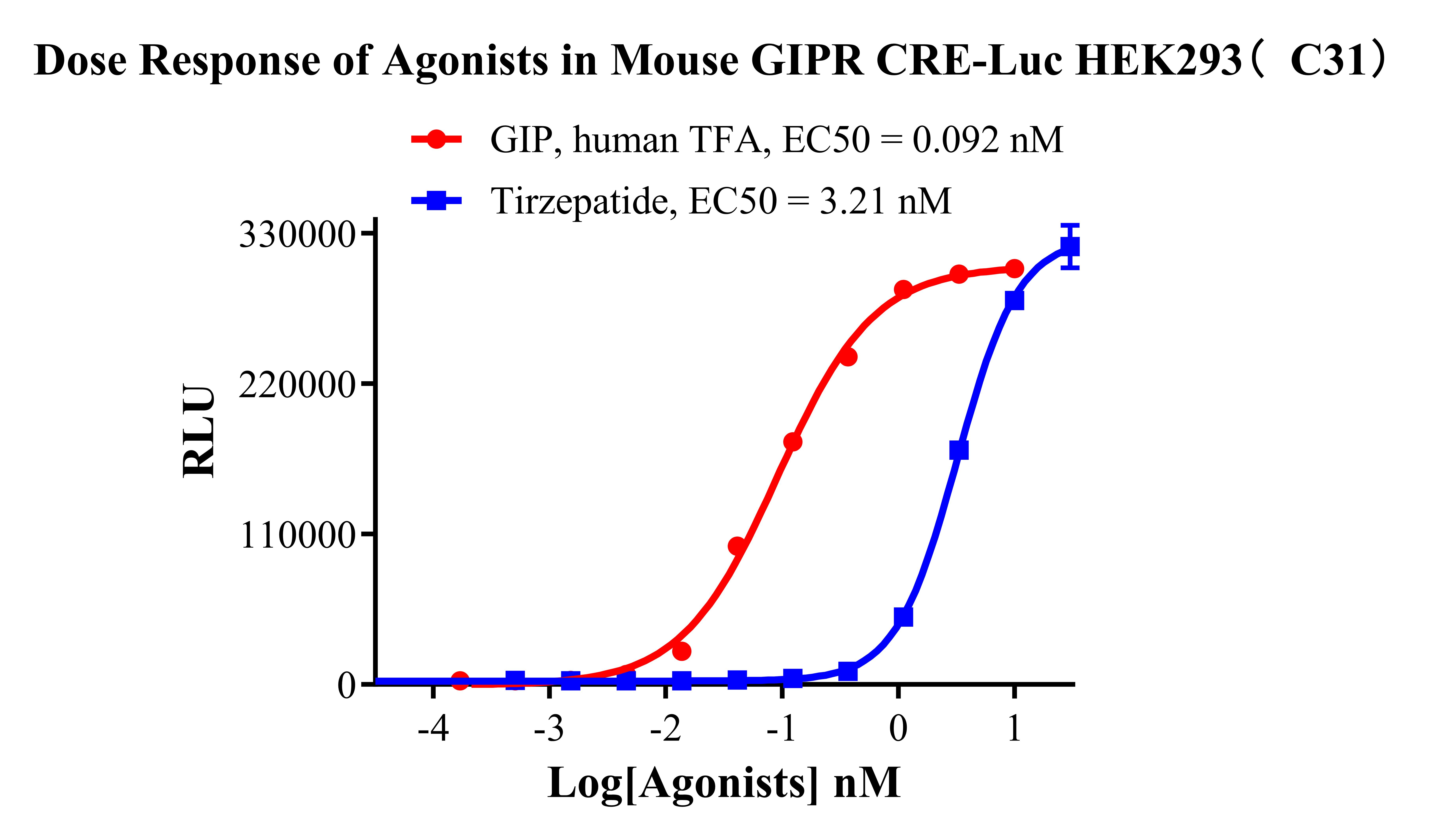 Figure 2. Dose Response of Agonists in Mouse GIPR CRE-Luc HEK293(C31).