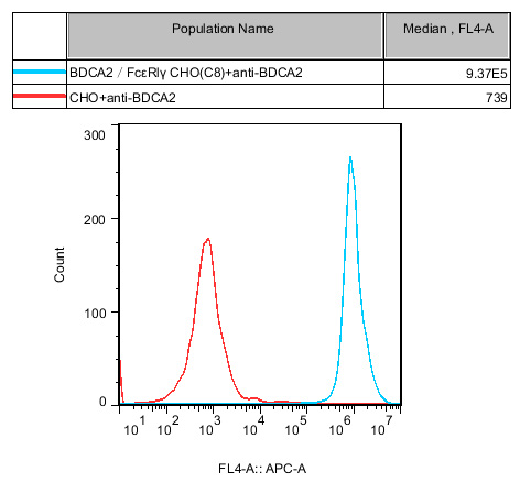 BDCA2/FcεRIγ CHO 細(xì)胞,在 CHO-K1 細(xì)胞的基礎(chǔ)上,穩(wěn)定表達(dá)人 BDCA2/FcεRIγ。  |