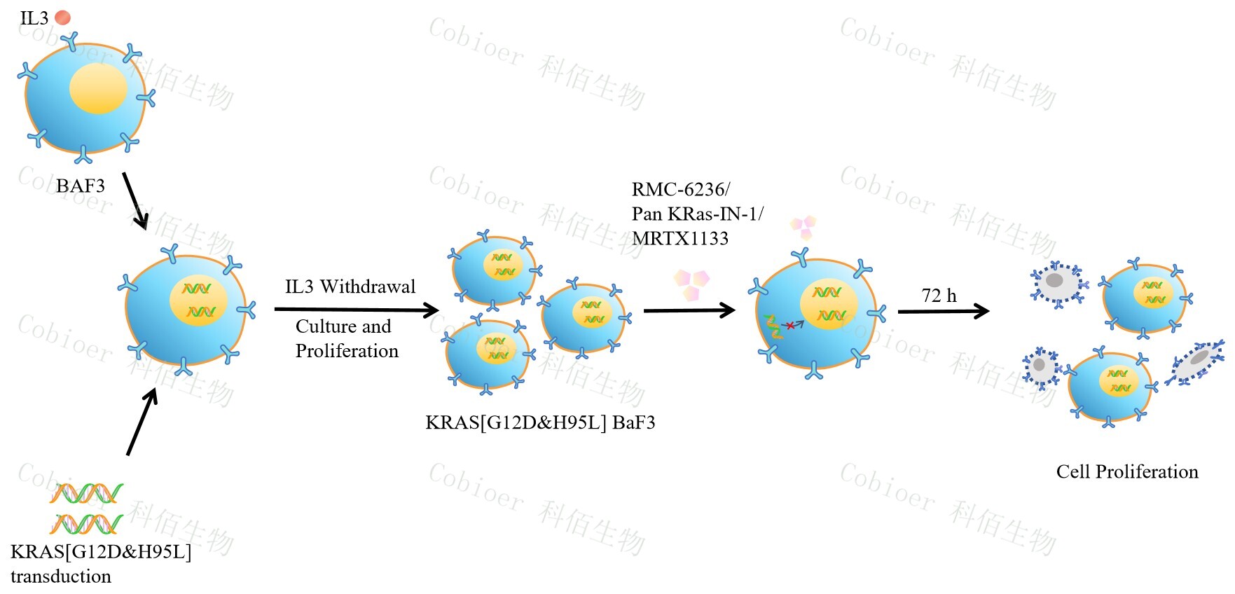 ![]() Figure 1. KRAS[G12D&H95L] BaF3 細(xì)胞的構(gòu)建原理圖  |