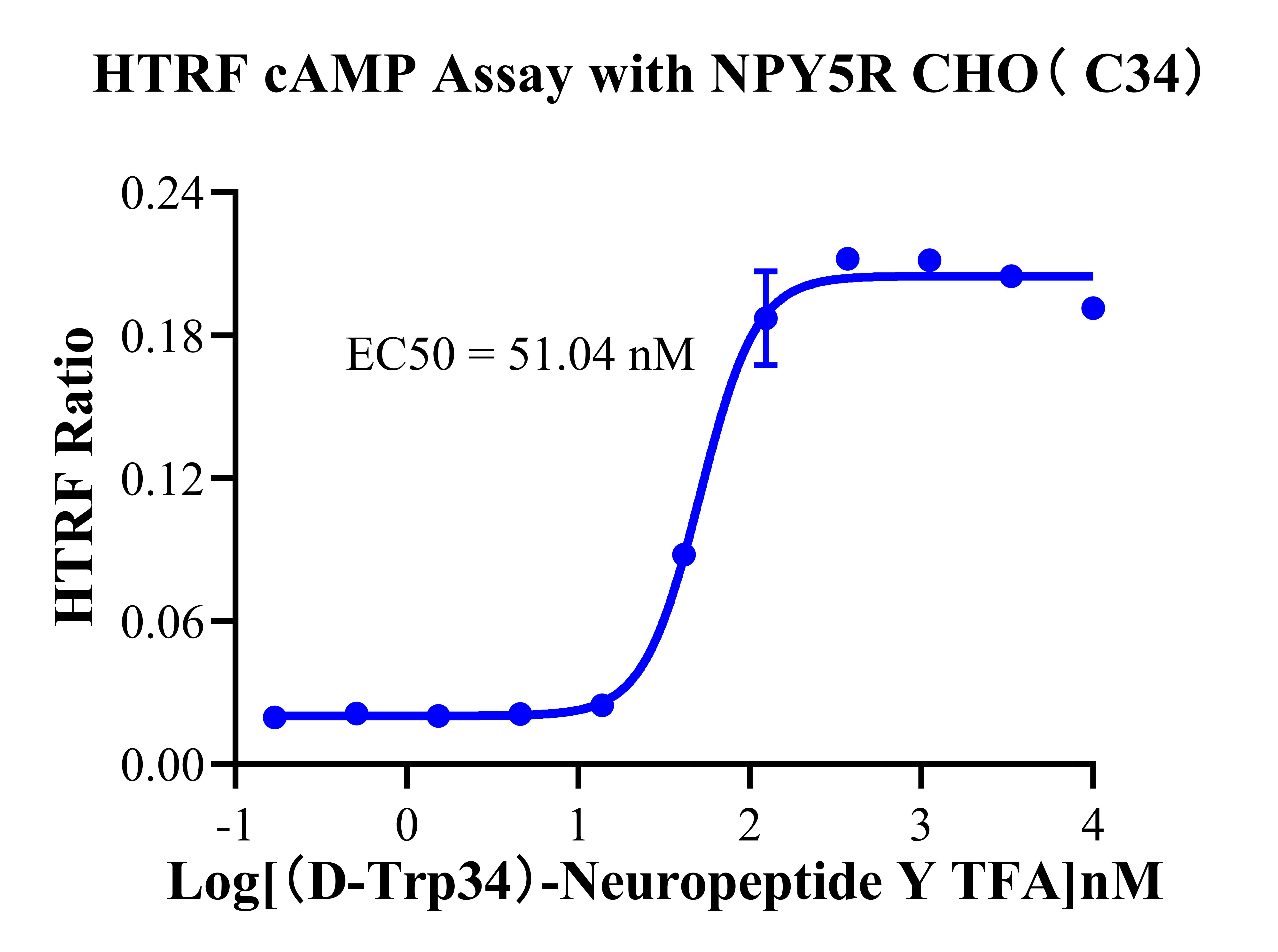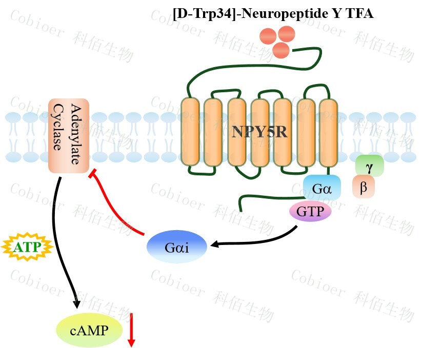 神經肽 Y(NPY)作為一種重要的神經遞質,廣泛分布于脊椎動物的中樞神經系統和 周圍神經系統。通過與不同的亞型受體結合,NPY 激活信號轉導通路,從而調節(jié)攝食 、能 量平衡、焦慮、晝夜節(jié)律和其他生理過程。NPY 受體(NPYR)屬于 G 蛋白偶聯受體家族, 目前在哺乳動物中已鑒定出 5 種受體基因亞型,即 NPY1R、NPY2R、NPY4R、NPY5R 和 NPY6R。 NPY5R 主要響應內源性配體神經肽 Y(NPY)、肽 YY(PYY)及胰腺多肽(PP), 通過偶聯 Gi/o 蛋白抑制腺苷酸環(huán)化酶活性、降低細胞內 cAMP 水平,同時激活 MAPK/ ERK 通路并動員鈣離子信號,在下丘腦攝食中樞、情緒調節(jié)環(huán)路及能量代謝網絡中發(fā)揮核 心作用,其異?;罨c肥胖、糖尿病及情緒障礙密切相關。  |