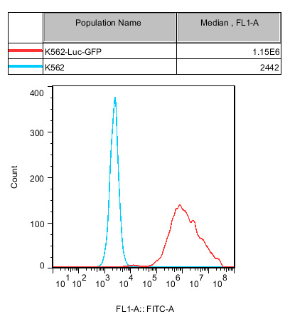 ![]() Figure 1. Recombinant K562-Luc-GFP constitutively expressing GFP. ![]()  |