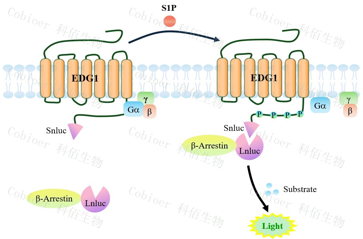 EDG1(S1P1) β-Arrestin CHO 報告基因藥靶模型很好的模擬了體內(nèi) EDG1(S1P1)/β- Arrestin 的信號轉(zhuǎn)導(dǎo)過程,原理見下圖所 示 。 當(dāng)缺乏配體刺激時, β-Arrestin 不 與 EDG1(S1P1)結(jié)合,融合β-Arrestin 的熒光素酶處于失活構(gòu)象,當(dāng) EDG1(S1P1)遭遇配體刺激 時,融合熒光素酶報告基因的β-Arrestin 被招募,使熒光素酶報告基因處于激活狀態(tài),加入 其底物后發(fā)光信號增強。![]() Figure 1. EDG1(S1P1) β-Arrestin CHO 細(xì)胞模型原理圖  |
