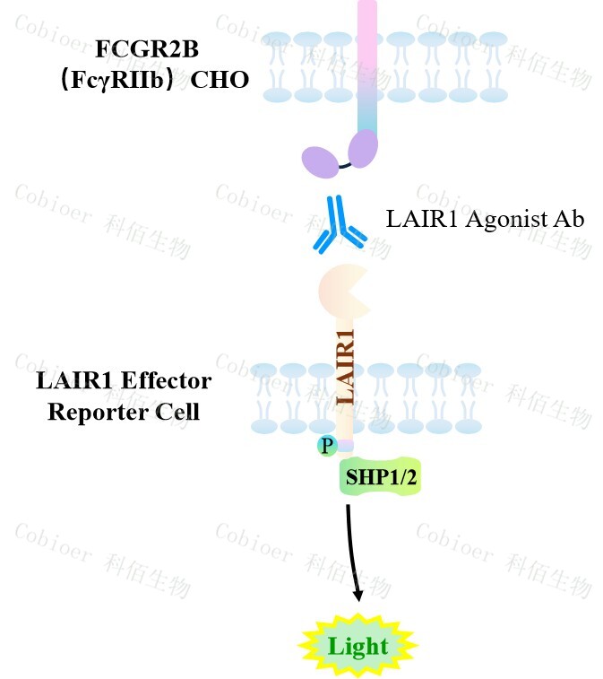 LAIR1 Effector Reporter Cell 報(bào)告基因藥靶模型很好的模擬了體內(nèi) LAIR1 的信號(hào)轉(zhuǎn)導(dǎo)過(guò)程,原理見下圖所示。![]() Figure 1.LAIR1 Effector Reporter Cell 細(xì)胞模型原理圖  |